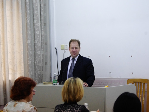 最后,俄罗斯联邦驻广州总领事馆副总领事马克西姆·维克多洛维奇先生为活动总结致辞。他指出,俄罗斯总统梅德韦杰夫近日签署了设立“俄语日”的命令,并在每年的6月6日,伟大的俄罗斯诗人、现代俄罗斯文学语言的奠基人普希金生日这天庆祝这一节日。该命令旨在保存、支持和发展俄语,这既是俄罗斯人民共同的民族财产,也是一种国际交流工具,同时还是世界文明中文化与精神遗产不可分割的一部分。另外,副总领事先生还对广外西语学院、广外俄语中心对于此次活动所做的组织工作表示了感谢,对参赛同学的积极表现给予了肯定和鼓励,并对俄语系同学们今后的学习提出了殷切希望。