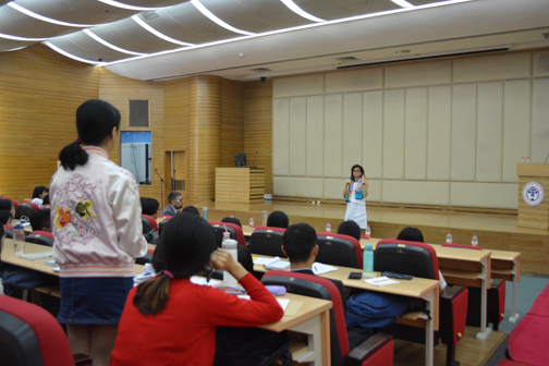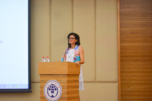 杨晓敏副院长首先向各位莅临开幕式的来宾致欢迎辞并简要介绍了在接下来的语言周中举办的系列讲座以及意大利电影放映等活动。