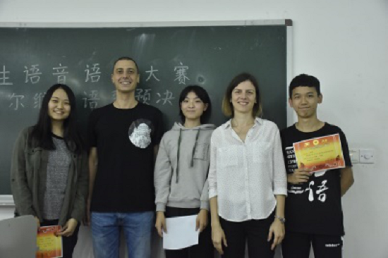 最后,两位评委为前三名选手颁奖,前三名分别是:袁孝铭、钟渝佳、张钰晨。希望同学们能够再接再厉,日后以更饱满的热情投入到塞语的学习中!
