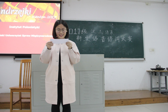 波兰语系2017年新生语音语调大赛于六教B202成功举办。本次大赛旨在检验同学们的语音语调学习成果,提高同学们的语言运用能力。本次大赛邀请到了华沙大学波兰语言文学系教授伊丽莎白·森科夫斯卡、波兰语系外教宝琳娜·海赫瓦奇以及波兰驻广州领事馆总领事助理戴安娜阿西女士担任评委,波兰语系系主任茅银辉老师、外教阿格涅什卡·雅辛斯卡以及教师张和轩出席本次大赛。