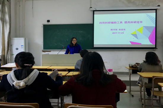 图书馆信息服务部主任、副研究馆员张爱优为与会青年教师就“如何利用科研辅助工具提高科研效率”这一主题,作了详细的介绍。