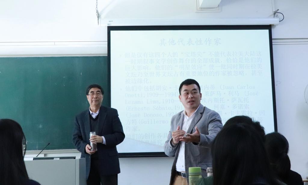 西班牙语系全体师生,一窥拉丁美洲“文学爆炸”其真容,并介绍了“文学爆炸”后小说研究。系列讲座分别由西班牙语系系主任陈星副教授、陈宁教授主持。
