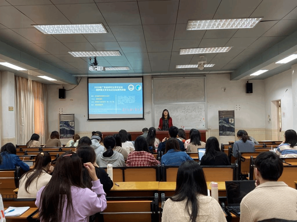 论坛期间,刘亚丁教授做了题为《中国文化在俄罗斯》《类型学的文学移植:袁枚与杰尔查文自然诗比较》两场精彩讲座。在第一场讲座中刘亚丁教授以历史事实为依据梳理了中国在俄罗斯历史上的文化印记,讲解了诸如《论语》《道德经》《三字经》等经典著作在俄罗斯的发展之路,为同学们进行中俄文化交流研究打开了窗口。在《类型学的文学移植:袁枚与杰尔查文自然诗比较》讲座中,刘教授将中俄运用类型学进行文学研究的现状进行了详细的对比,并从该角度分析对比了袁枚与杰尔查文的自然诗,与会者受益匪浅。