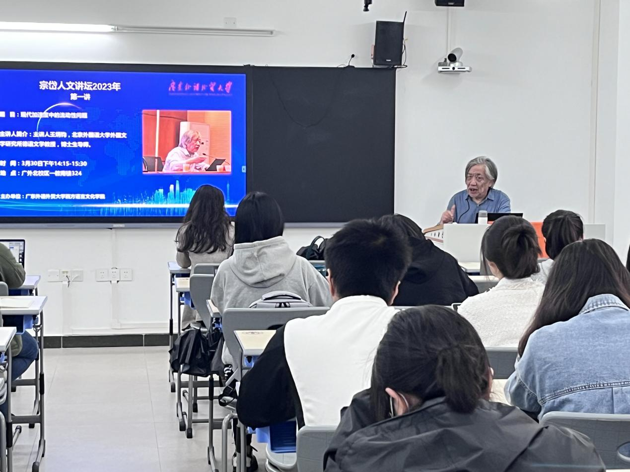 在北校区一教南楼324举办了宗岱人文讲座,北京外国语大学王炳钧教授应邀为西语学院师生带来了一场题为《现代加速度中的流动性问题》的学术讲座。讲座由西语学院副院长、德语系卢铭君教授主持,学院多名中青年教师、本硕博学生参与讲座。