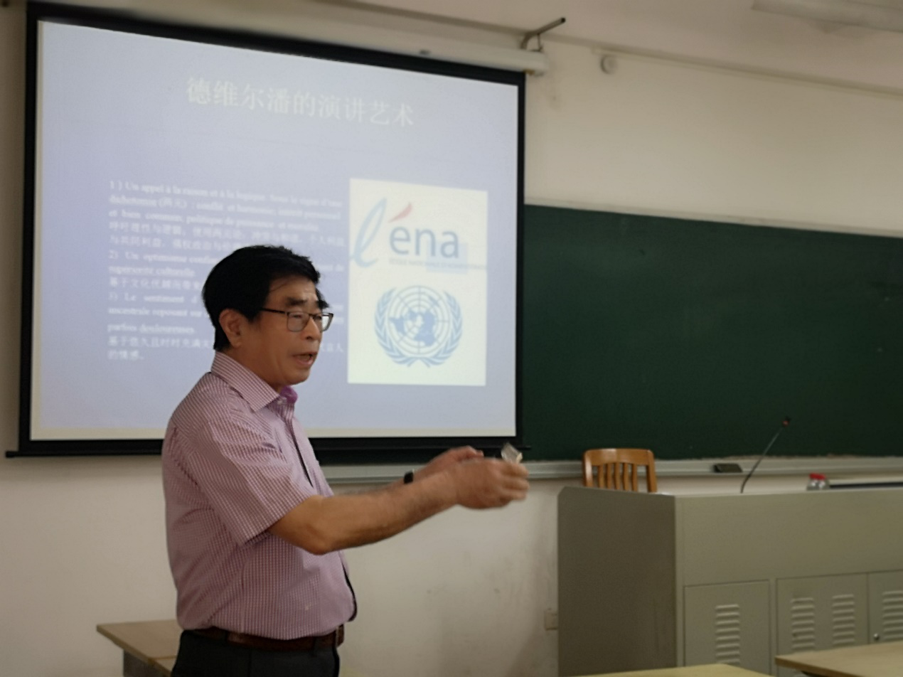 讲座由法语系主任叶剑如副教授主持,西语学院40余位老师和同学参加了讲座。通过本次讲座,同学们获得了极为丰富的文化知识,扩大了自己的视野,开拓了新的思考角度,也能够更好地理解目前百年不遇之时代中的国际关系和外交行为。