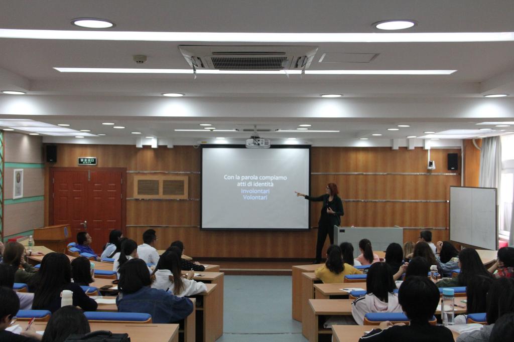 ,围绕此次语言周主题“意大利语与网络,意大利语的网络”为同学们带来了一场精彩的讲座。Vera Ghneno女士是一位社会语言学家,研究人们如何在网络上运用意大利语,现任职于意大利著名的“秕糠学会”。