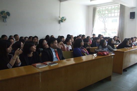 本网讯2014年3月19日下午,墨西哥著名作家贝尔纳多·费尔南德斯(Bef)在四教115举行文学讲座。西班牙语系师生参加了此次讲座。