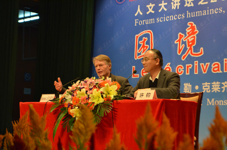 克莱齐奥先生在杨晓敏博士的翻译下与学子互动
