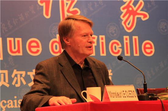 接下来的提问环节中,克莱齐奥先生就同学们对于《诉讼笔录》的写作风格,中国诺贝尔文学奖获得者莫言的作品等问题进行了解答,西语学院的杨晓敏博士担任翻译。