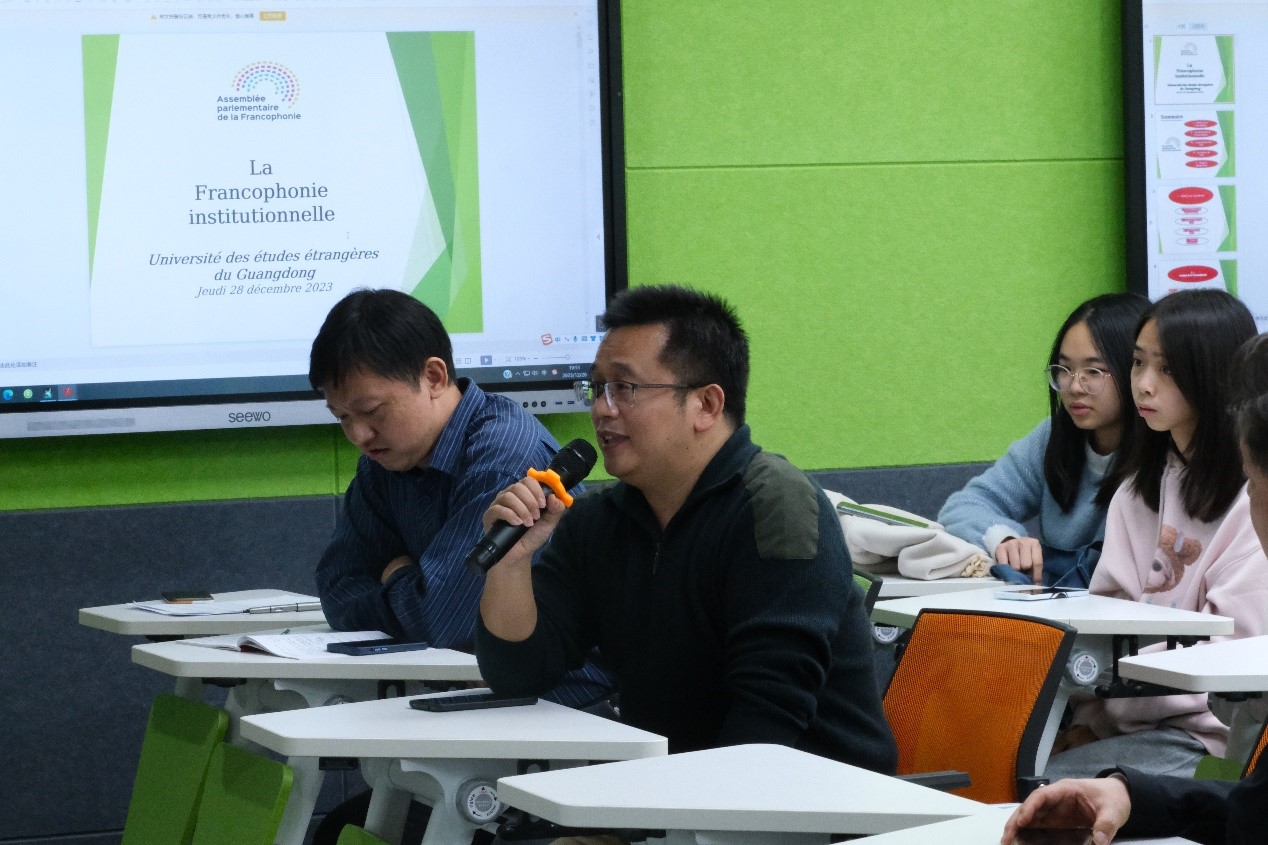的师生带来了题为“服务于多边主义、多元文化和多语言主义的法语区机构”的学术讲座。本次讲座受到了法语系本科生和研究生们的热情响应,讲者与观者之间展现出了积极的互动,讲座气氛活跃。