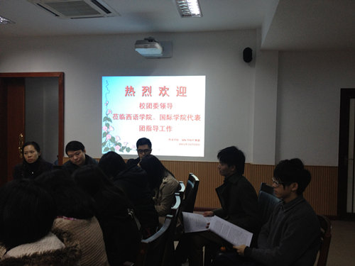 即将举行共青团第四次代表大会之际,西语学院和国际学院的团代表参与座谈。出席会议的有校团委书记谢秀兰,校团委副书记国佳、团委副书记陈兵及其他校团委常委、委员。座谈会上学生代表积极发言,团委老师亦就学生的发言内容细心给予了答复,整个座谈会在一种轻松愉悦的气氛中进行。