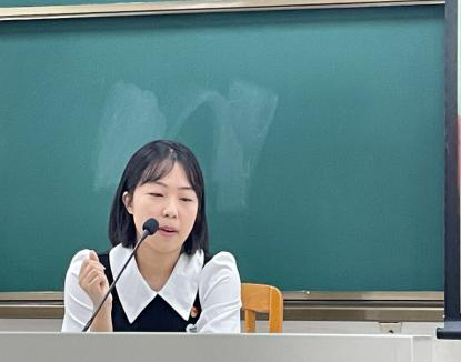(党史宣讲团成员李盼盼,陈韵茵,詹森恒讲党课)