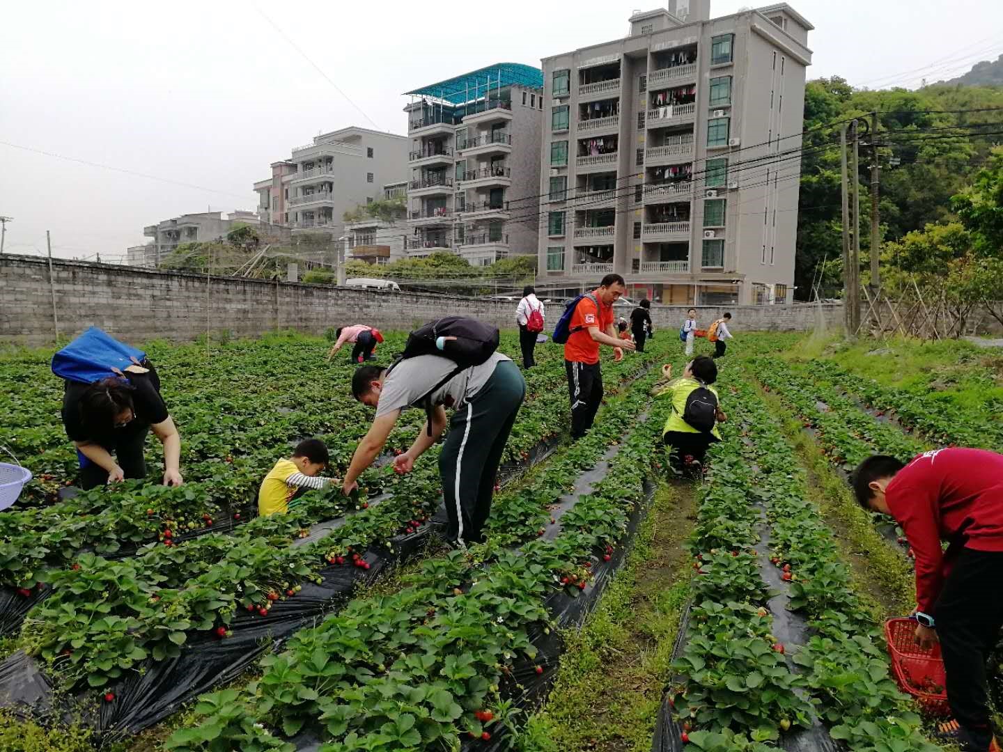 下山品尝过农家菜后,大家乘坐大巴前往山水草莓园,进行摘草莓活动。新鲜的草莓,色彩艳丽、香味诱人。大家一边采摘一边品尝,相互交流,互相拍照,充分感受清新的田园气息,体验动手的快乐和收获的喜悦。