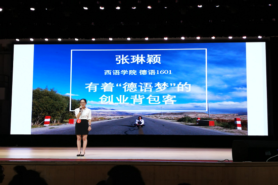 2016级德语专业张琳颖同学的展示标签是:有着“德语梦”的创业背包客。她与大家分享了从自己转专业、当背包客到后来参加大学生创业的故事。最终,张琳颖同学顺利被评为“凤鸣岭南十佳青年”。