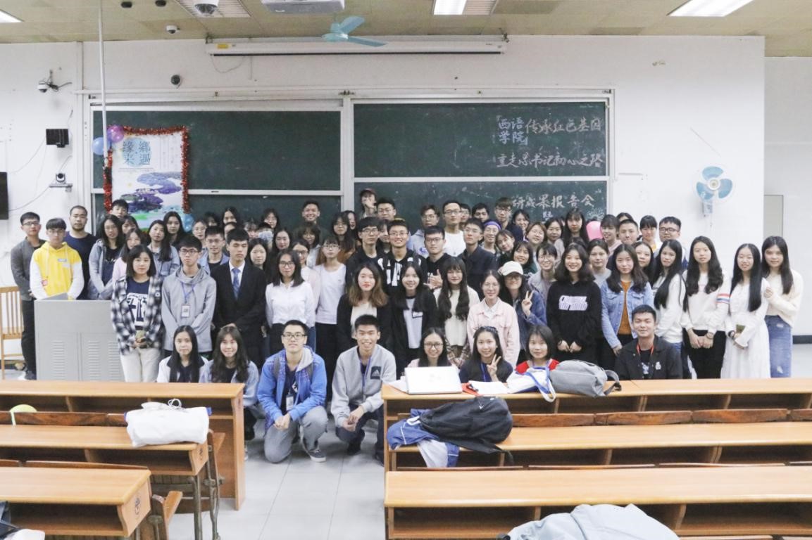 本网讯 11月29日晚19点,筹备已久的2018年暑期“三下乡”社会实践活动成果展示暨表彰大会在二教219隆重举行。西语学院党委副书记陈华荣老师、西语学院团委书记王斌龙老师、西语学院辅导员张悦欢老师和西语学院辅导员倪娉婷老师出席了本次活动。