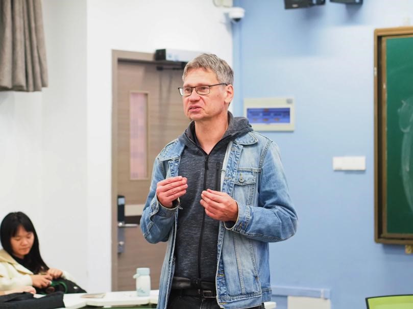 本网讯 3月7日下午,第六届全国本科生德语配音大赛广外选拔赛于一教南楼207多功能教室顺利举办。共计有十二支队伍报名参与并展开角逐,德语系主任吴晓钢、德语系外教Ingo出席并担任评委。