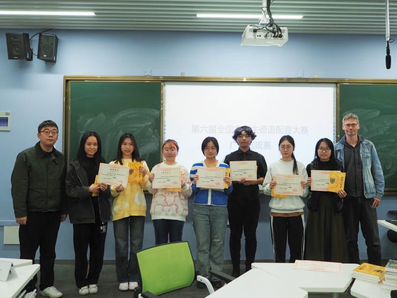 德语配音大赛选拔赛作为广外德语系的标志性活动之一,从报名参与到作品收集与选拔,再到比赛当日的演出与评比,汇聚了语系全体师生的辛勤努力和汗水,不仅鲜明地体现了德语语系办学特色,更展示了德语系学子的专业素养。希望同学们能带着对语言与文化的热情,在德语求学之路上继续前行!
