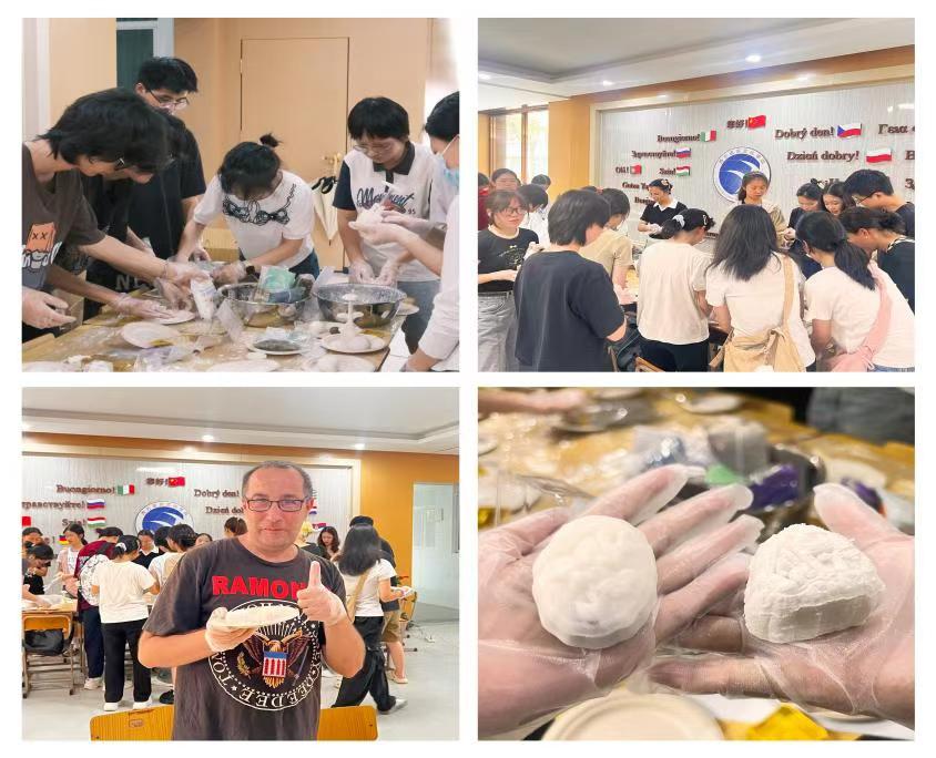 在制作冰皮月饼过程中,师生们认真揉皮,挑选自己心仪的月饼馅料,包裹于冰皮内,并细心用模具压实。看到自己第一次亲手做出的月饼,师生们体会到了制作手工月饼的乐趣,纷纷开心地拍照留念。不少同学表示亲自包的月饼吃起来格外美味,现场氛围愉悦而温馨。