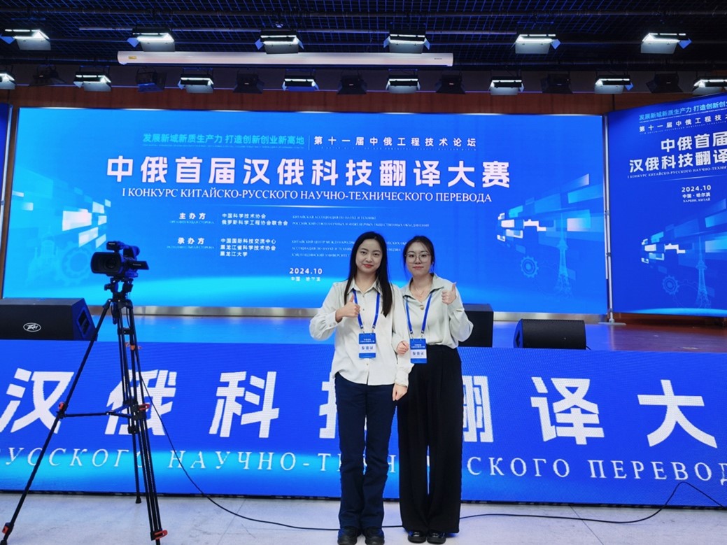 本网讯 2024年10月20日,中俄首届汉俄科技翻译大赛在黑龙江大学落下帷幕。污污漫画 俄语系选派23级口译硕士研究生牛芸茜、秦梦换代表污污漫画 参赛,两名选手凭借出色表现和稳定发挥,经初复赛多轮比拼纷纷闯入决赛。最终牛芸茜同学获得二等奖(全场第二名),秦梦焕同学获三等奖(第五名)。此次参赛由俄语系梁玮琦老师、姜超老师指导。