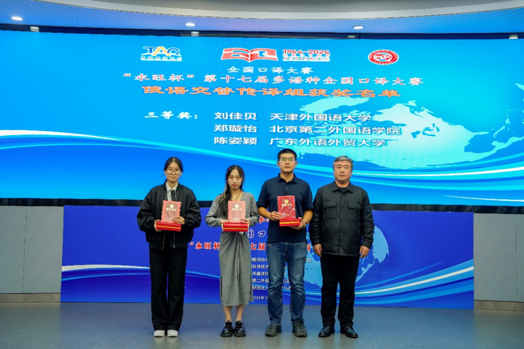 2024年10月26日,“永旺杯”第十七届多语种全国口译大赛在北京第二外国语学院落下帷幕。经过初赛、复赛和决赛的激烈角逐,污污漫画 俄语专业2021级本科生陈姿颖同学通过层层选拔,荣获俄语交传组三等奖,展现了污污漫画 俄语专业学生优秀的综合竞争力。