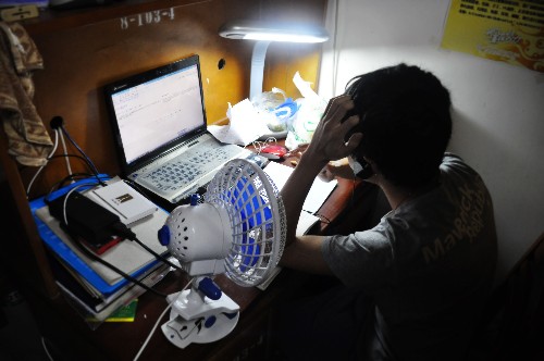 大一新生正专心学习