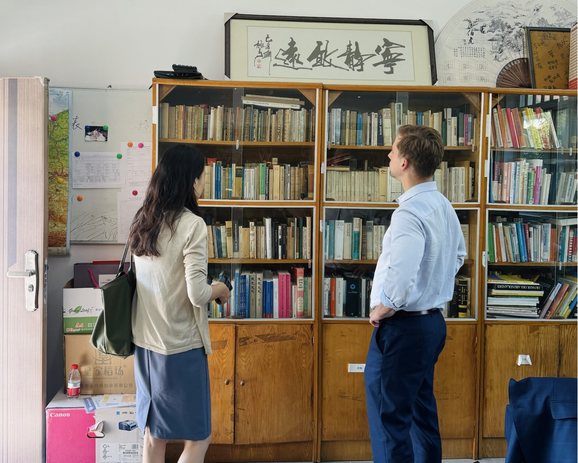 卢铭君副院长陪同来宾参观德语系办公室
