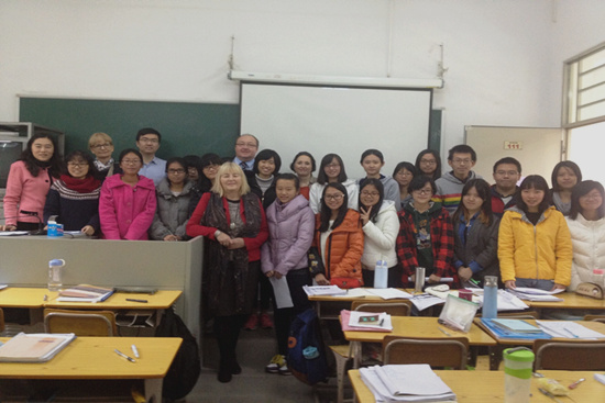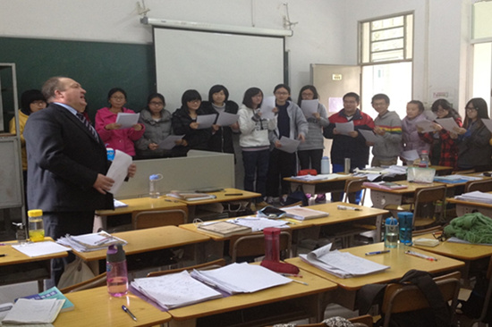 彼得教授带领同学们朗诵诗歌
