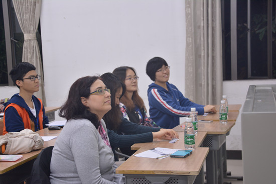 3月27日晚上七点,葡语配音大赛于六教B206进行.现场气氛活跃热烈,同学们踊跃参与配音比赛并与评委老师Júlio和桑大鹏进行了趣味互动。
