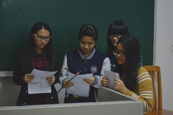两组选手为大家带来的都是电影《波兰人在伦敦》片段的配音,她们精彩的表现赢得了台下的热烈掌声。外教Agnieszka还对选手的表现进行了精彩的点评。最终,由卓晓明、陈嘉燕、李婉荥、林冰娜组成的Siostry队以优异的成绩进入了决赛。