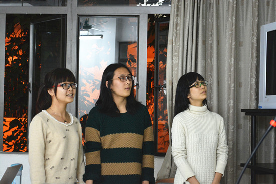 德语系影视配音大赛初赛于3月27晚七点在六教B315准时揭开序幕,评委由三位德语系研究生担任。首先出场的是由大四的3位同学组成的“进击的雪宝”队,他们的语音语调到位,感情充沛,细节把握十分到位,在歌曲、模仿和台词讲述间灵活转换,给现场观众们留下深刻印象,并以第一名的成绩进入到了决赛。
