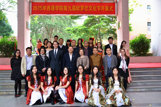 院长杨可教授,党委书记方华老师,党委副书记陈华荣老师,各语系专业老师及同学们。