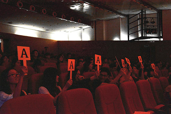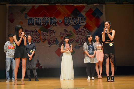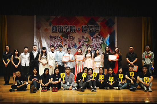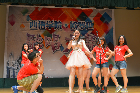 本网讯 4月21号晚,西语学院第九届欧罗巴文化节之“浮浪诗人的赞歌”小语种歌唱大赛在六教报告厅举行。担任本次歌唱大赛的评委的有学生工作处李丽人老师,校艺术团指导老师涂颖老师和学生就业指导中心的许俊浩老师,他们都具有多年的歌唱和舞台表演经验。本次大赛还邀请了来自其他兄弟学院的九位大众评委。