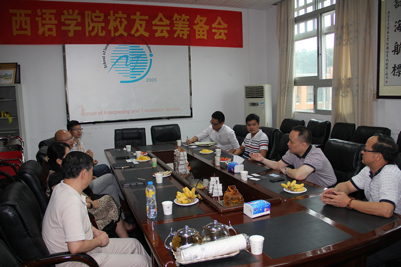 学科建设、教学科研成果、招生就业和学生活动等情况。杨院长表示,非常欢迎各位校友“常回家看看”,多联系,多关心,多支持学院的工作。方华书记也向各位校友介绍了学校和学院的一些情况,他强调,成立学院校友会,是广外50周年校庆系列活动的一部分,学校领导对此十分重视。方书记还向校友们介绍了学生活动、实习基地和毕业生就业等情况。之后学院领导与校友们进行座谈,就成立西语学院校友会的意义和作用交流了思想。校友们兴致高涨,畅所欲言,提出了许多好的想法和建议。他们普遍认为通过校友会这一平台可以为学院、校友及在校师生搭起沟通的桥梁,可以分享彼此经历和人生感悟给师弟师妹以启迪,可以通过信息分享帮助在校毕业生就业,可以借助校友会的力量找到失联的老校友,也可以依托校友会进行统计和宣传工作。