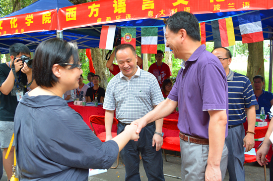 校党委书记隋广军前来慰问西语学院摊位