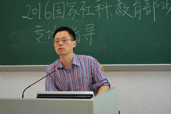 邀请张弛教授对申报国家社科、自科、教育部项目进行指导。此次指导会于北四教116教室开展,刘齐生副院长亲临现场指导,西语学院各语系老师也出席了此次指导会。