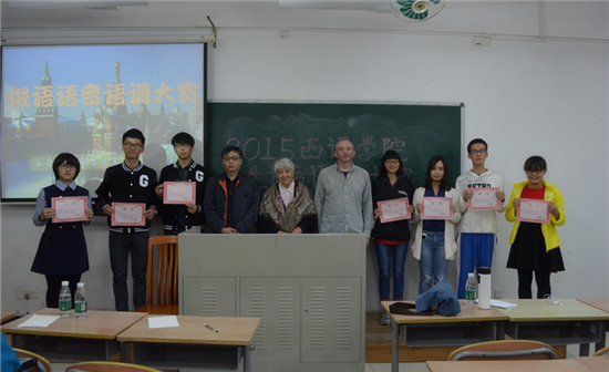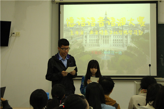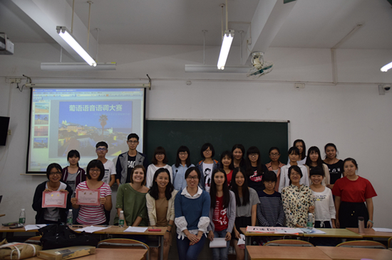 本网讯 2015年11月下旬,西语学院一年一度的新生语音语调大赛成功举办。各语系分别邀请了专业课老师、外籍教师及研究生师兄师姐担任比赛评委。比赛各具特色,初赛主要以朗读形式为主,决赛则形式多样,大家通过朗诵、配音、唱歌和演话剧等形式展现自己对语言灵活运用的能力。