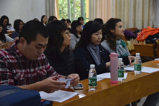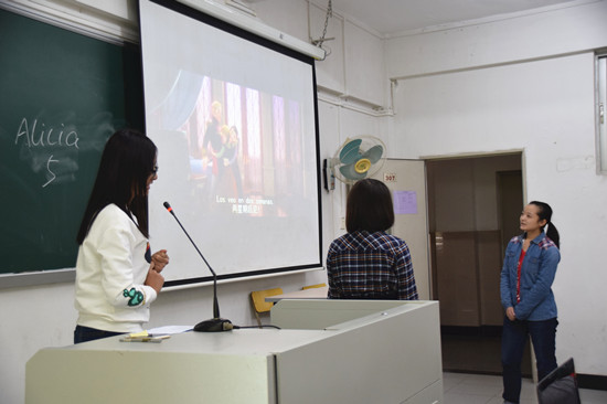 11月26日下午一点,2015年西语学院新生语音语调大赛西班牙语系决赛在二教307举行。系主任陈星老师和林婧老师、吴凡老师以及外教Carmen担任此次比赛的评委。