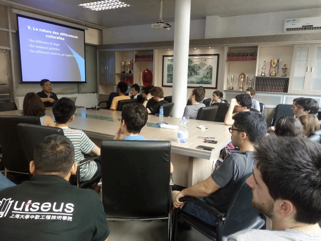 讲座中,郑立华教授用幽默风趣的语言,先从中法文化之间的称呼,时间等等方面的差异入手,讲述中法交际误会产生的原因;其次还讲到了中国人的“面子”问题,并深入到文化层次;最后,郑立华教授与法国学生积极互动,耐心解答他们来到中国后所遇到的问题和疑惑。