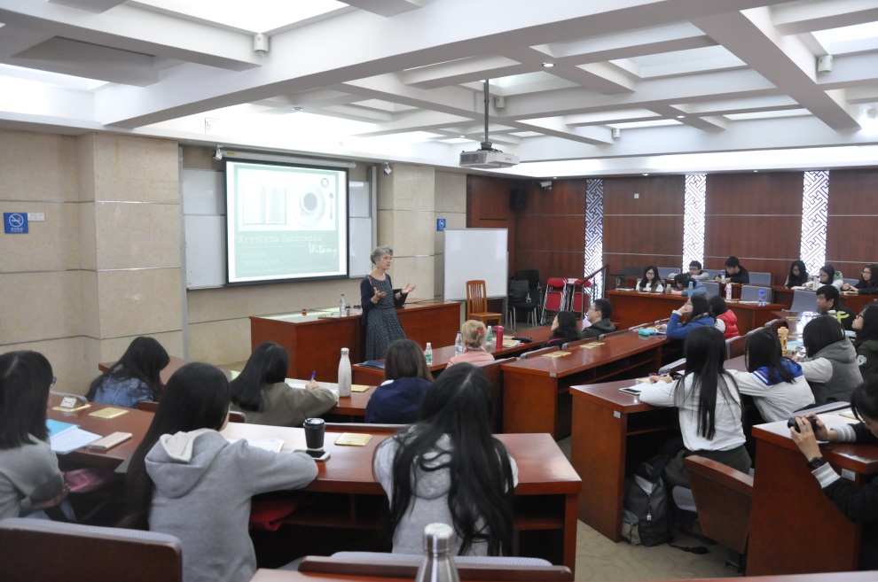 波兰语系师生正在聆听克里斯汀娜·冬布罗夫斯卡的讲座