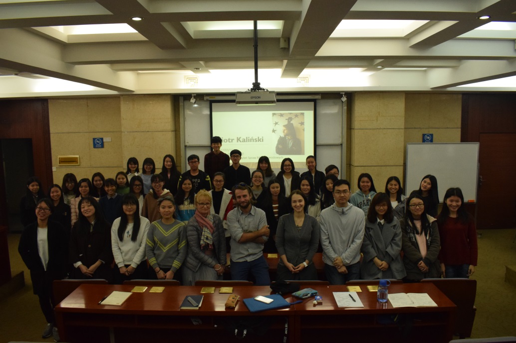 为波兰语系师生作讲座。出席本次讲座的有外教阿格涅什卡·雅辛斯卡(Agnieszka Jasińska),青年教师张和轩以及波兰语系大一大二的学生。