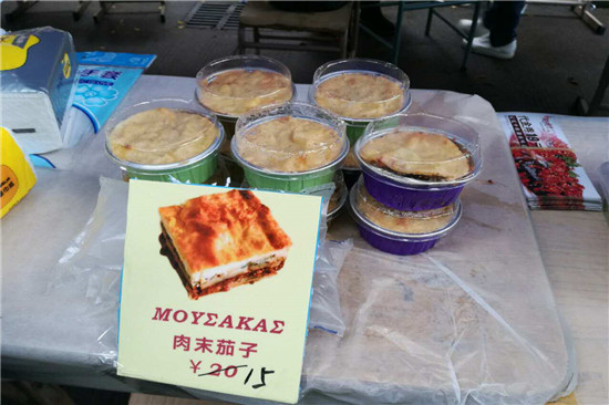 在开幕式表演的同时,各语系的同学正紧张地准备美食。他们使出浑身解数吸引顾客,精美的包装、浓郁的香气,引人驻足,德语系的同学更是拿出吉他、麦克风现场演绎歌曲,引来观众的围观。各摊位的美食各具特色,有法语系的起泡酒、德语系的小香肠、西班牙语系的patatas、意大利语系的张学友的咖啡和张志明的肉酱意粉、希腊语系的肉末茄子、希腊酸奶、波兰语系的棉花糖……美食散发的浓郁香气布满整个校园,吸引了各学院师生和外国友人。