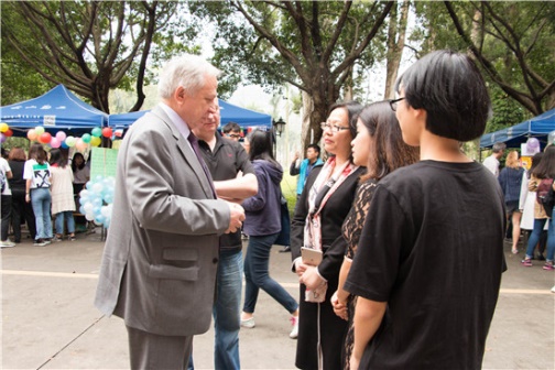 团委学生会举办的第十一届欧罗巴文化节之“糖果王国的盛会”开幕式嘉年华在北校区第二教学楼中庭和校道顺利举办。出席本次活动的嘉宾有俄罗斯联邦驻广州总领事普罗斯维尔金·亚历山大、波兰驻广州领事馆总领事Joanna Skoczek以及文化官员Malgorzata Czausow、希腊副总领事尼科拉斯·拉米瑞斯和行政官巴娜乔塔·康塔库、德国领事馆副领事雷德、法国领事馆语言教育与运动项目官员皮耶尔伊夫、意大利领事馆文化官员Beatrice Sbrollini、英德市黄花中学副校长张廷琳老师、污污漫画