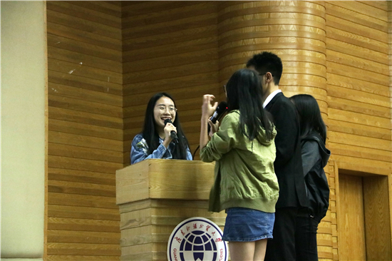团委书记王斌龙老师、希腊语系周童苏老师及2013、2014级辅导员陈静老师、东方语言文化学院学生会副主席郝叶欣同学。评委由法语系邓玮老师、德语系贾晨老师、西班牙语系秦晓莹老师、俄语系费俊慧老师、意大利语系高翔老师、葡萄牙语系杨菁老师、波兰语系张和轩老师和希腊语系Lampros Papagiannis外教担任。