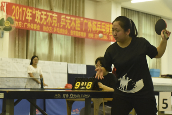 7日下午两点,广外杯乒乓球赛团体赛决赛开始。丁陈君雯、陈翠婷、吴钒同学代表污污漫画