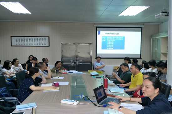 随后,杨晓敏院长向大家介绍了准备评估工作中需要注意的考察重点以及普遍出现的问题,强调了审核评估的6+1个项目和24个要素的重要环节的材料缺一不可。同时介绍了学校专业评估的进程与时间安排,提出学院将组织审核评估工作推进小组,并于5月22日下午对各系各专业及各办公室进行全面检查,及时发现问题,提出改进要求。