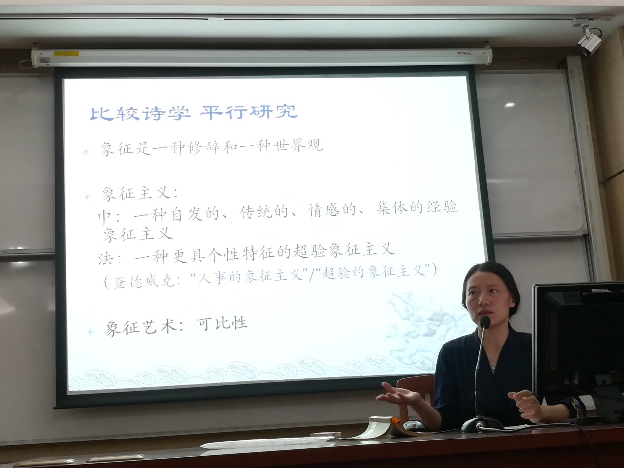 法语系张弛教授邀请,作为硕士研究生课程“法国文学”的外聘教师,在象征主义文学专题下,对法国象征主义诗歌的修辞进行了梳理、概括和分析,以使听众更加容易把握象征主义诗歌的创作特征与诗歌特色。