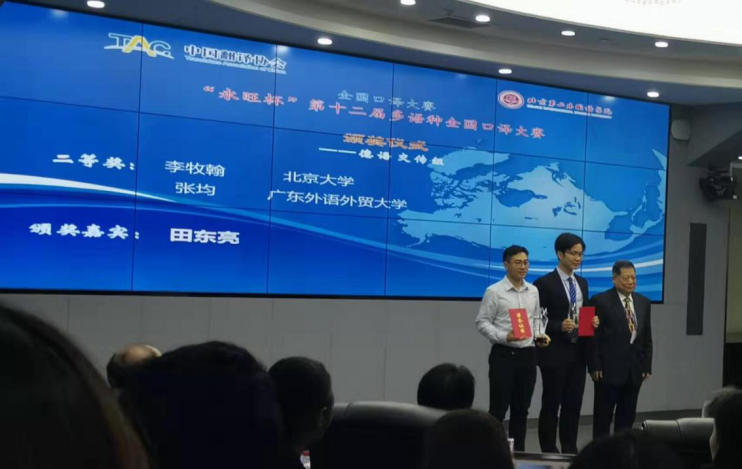 广外德语口译MTI学生张均获得德语交传组二等奖