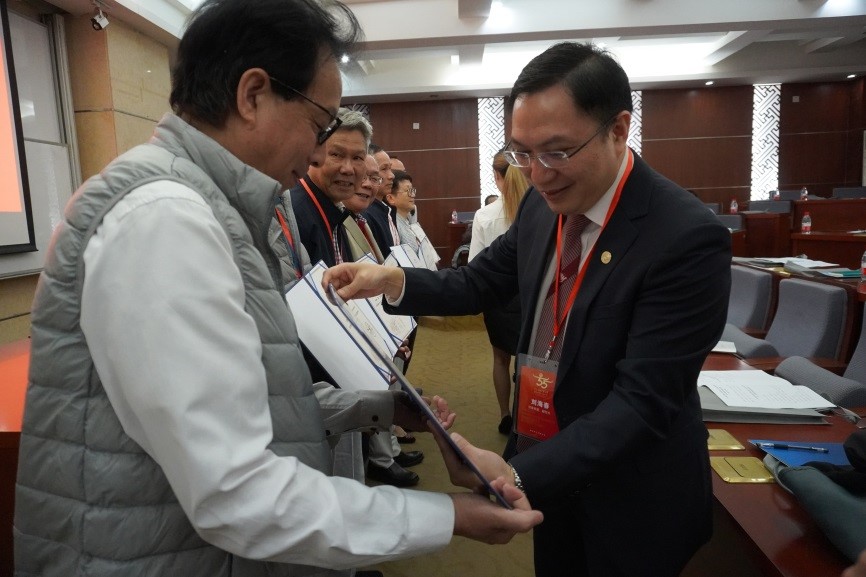 刘海春副校长为理事会顾问和会长颁发聘书