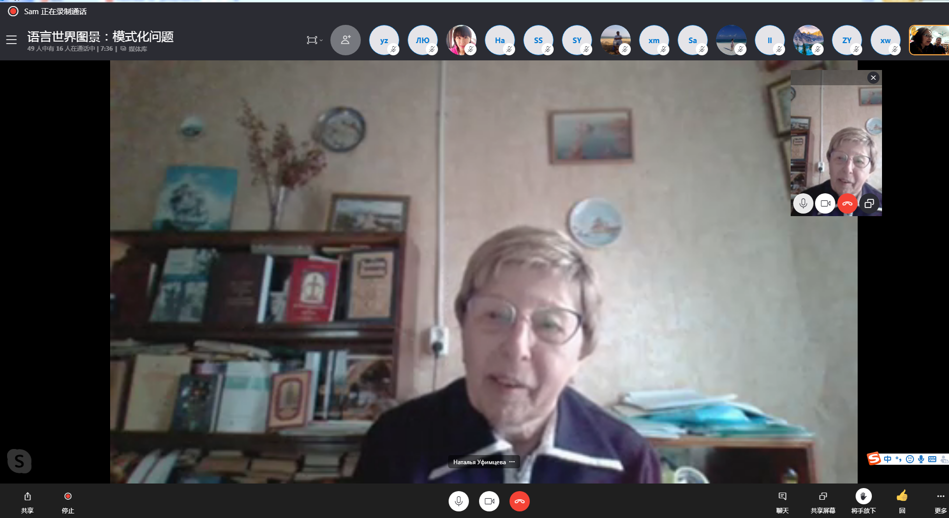 第二场讲座,乌菲姆彩娃教授通过层层递进讲述了俄罗斯言语活动论的理论基础。在理解言语前先阐述了什么是语言,它是人类所有活动的管控机制,而内部言语则是语言与智力,口头与书面语及各民族间的媒介,后介绍了阿·尼·列昂季耶夫的活动论框架再到阿·阿·列昂季耶夫的言语活动论及其应用前景。师生们表示从中真切地感受到了理论运用于实践、实践不断丰富理论的要义。