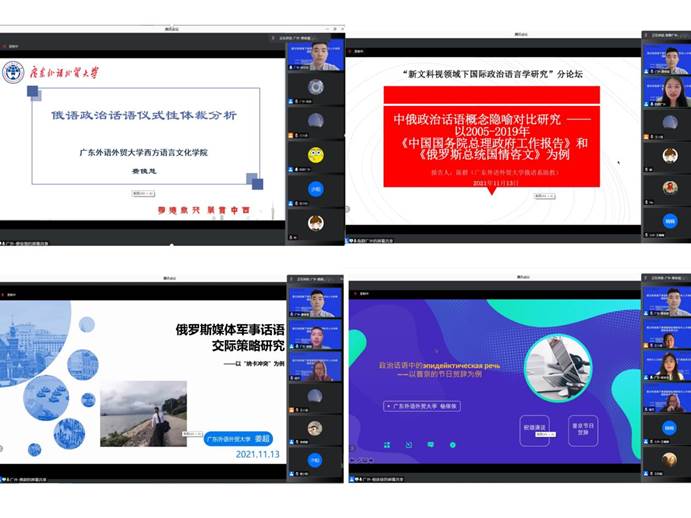 俄语系费俊慧副教授主持了下午的“新文科视域下国际政治语言学研究”分论坛并以《俄语政治话语仪式性体裁分析》为题进行了发言。分论坛上俄语系教师陈群的发言《中俄政治话语概念隐喻对比研究——以2005-2019年〈中国国务院总理政府工作报告〉和〈俄罗斯总统国情咨文〉为例》,博士生杨依依的发言《政治话语中的эпидейктическая речь——以普京的节日贺辞为例》和博士生姜超的发言《俄罗斯媒体军事话语交际策略研究》分别展示了污污漫画